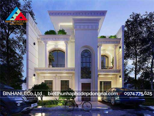 Phong cách cổ điển châu Âu hiện lên với vẻ đẹp đặc trưng là vẻ đẹp bề thế, chi tiết trang trí cầu kỳ, công phu, có điểm nhấn ở mái, hiên, trụ cột của ngôi nhà. Các thiết kế nhà ở theo phong cách này còn phải chú ý đến sự cân bằng, bố cục đối xứng với tỉ lệ vàng trong mọi chi tiết để tôn lên vẻ đẹp sang trọng, xa hoa của tổng thể thiết kế một cách hoàn mỹ nhất. Kết hợp với không gian sân vườn tự nhiên nhưng được chăm sóc tỉ mỉ hoàn thiện không gian sống lý tưởng.