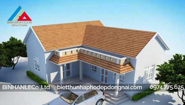 Mẫu nhà cấp 4 chữ L mái đỏ