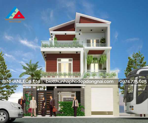 Một mẫu biệt thự mini 3 tầng đẹp sẽ giúp bạn có được những ý tưởng cho không gian sống của mình. Mẫu biệt thự này được lấy cảm hứng từ không gian xanh, kết hợp với lối kiến trúc đơn giản nhưng hiện đại. Không gian hai mặt tiền làm nổi bật lên kiến trúc độc đáo, mỗi mặt được thiết kế với những điểm nhấn riêng tạo nên sự thu hút cho ngôi nhà. Khoảng sân nhỏ phía trước là khu vực lý tưởng để bạn để ô tô.