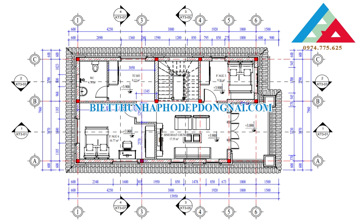 Mặt bằng thiết kế tầng 3 mẫu nhà biệt thự 3 tầng đẹp nhất