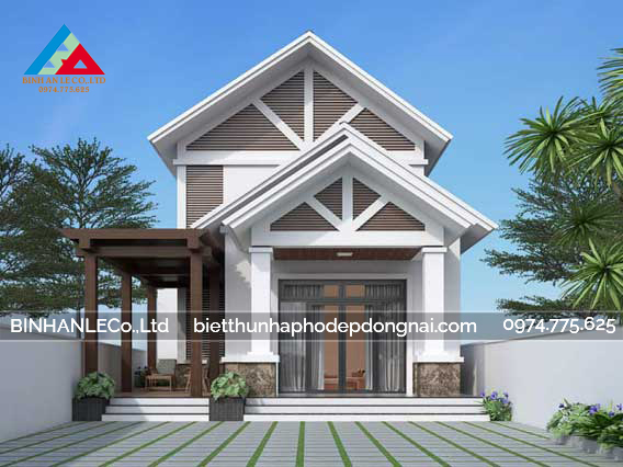 Đây là 1 mẫu nhà được ưa chuộng những năm gần đây , phù hợp với cả nông thôn và thành thị . Mang vẻ đẹp kết hợp giữa truyền thống và hiện đại . Căn nhà mang vẻ đẹp rất thu hút, ấn tượng và còn đáp ứng được nhu cầu , phong tục tập quán của người Việt Nam . Phần mái là mái thái giật cấp , mát mẻ mùa hè và ấm áp mùa đông . Tường sơn màu trắng , ngói nâu đậm và xà cùng các cửa bằng gỗ . Tổng thể mang lại cảm giác ấm áp và sang trọng .