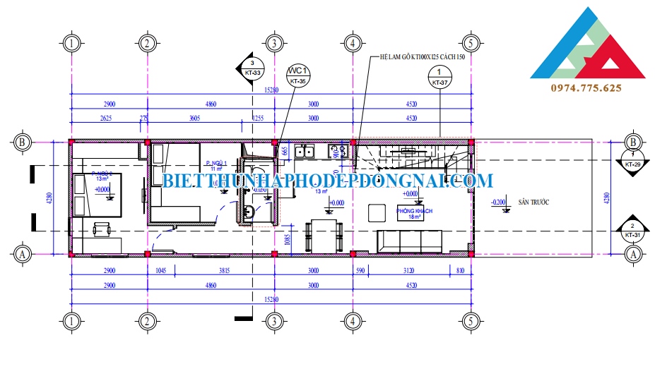 Mặt bằng kiến trúc mẫu nhà phố 2 tầng đẹp