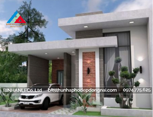 Phong cách hiện đại là phong cách được yêu thích và xây dựng nhiều nhất những năm gần đây. Hình khối đơn giản nhưng phá cách , chắc chắn , gọn gàng . Kết cấu tương đối đơn giản, màu sắc chủ đạo là trắng, được trang trí ốp tường bằng đá granit hay gạch đỏ sắp xếp ở có chủ ý ở các vị trí. Dem lại 1 tổng thể ấn tượng, có tính thẩm mỹ cao. Trên tường được bố trí 1 tấm kính lơn, vừa tạo cảm giác rộng rãi vừa lấy được nhiều ánh sáng tự nhiên, khoảng sân trước có bố trí sân để dùng làm nơi để xe.