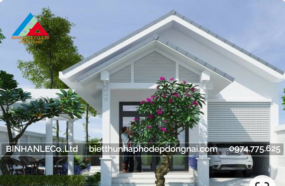 Căn nhà cấp 4 này lấy màu trắng làm chủ đạo , thiết kế thêm mái che tạo tiểu cảnh sắp đặt bàn ghế ngoài trời . mái thái dốc giật cấp , được bố trí gara để xe. Mặt bằng cơ bản, bao gồm : 2 phòng ngủ , 1 phòng khách , 1 nhà vệ sinh , 1 phòng bếp + phòng ăn.